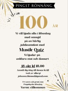 Vi vill bjuda alla i Rönnäng med omnejd på en härlig jubileumsfest med Musik-Quiz.